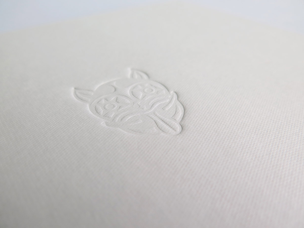 Papel: Tapa en Curious Matter Goya White 135 grs., emplacada en Carton piedra, Guardas en papel Nettuno Polvere 215 grs., Interior Couche 170 grs.
